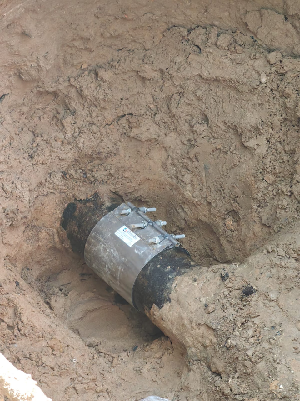 Сотрудники Балашихинских Коммунальных Систем быстро обнаружили утечку и устранили её путём монтажа свёртной муфты.